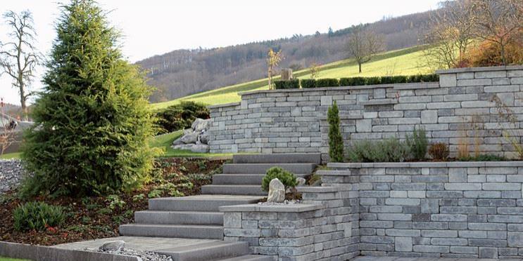 Mauern haben viele Funktionen. Sie vermitteln Geborgenheit. Sie schützen. Sie stützen, wenn es gilt, höher gelegte Beete, Mauern, Abgrenzungen und Terrassierungen zu gestalten. Das Mauersystem BiMuro spielt mit immer neuen Perspektiven: Gerumpelte Kanten (von leicht gefast bis Ecke abgeschlagen, mit teilweise bossiertem Charakter).