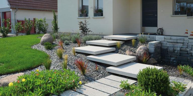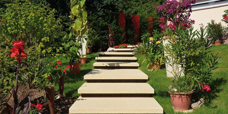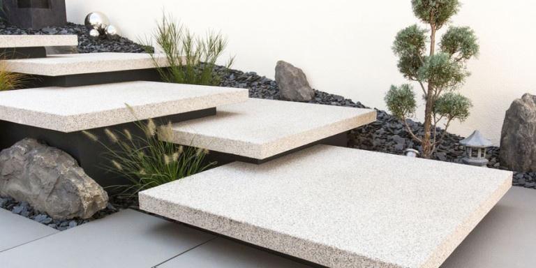 Die "schwebende Stufenanlage" ist die Interpretation des Themas "über Stufen wandeln". Sie ist einzigartig und optisch eine Augenweide. Die Stufen scheinen über den Pflanzen zu schweben. Beeindruckend ist die Leichtigkeit der Stufenanlage. Tocano Artwork-Stufenplatten: Ein Thema neu interpretiert.